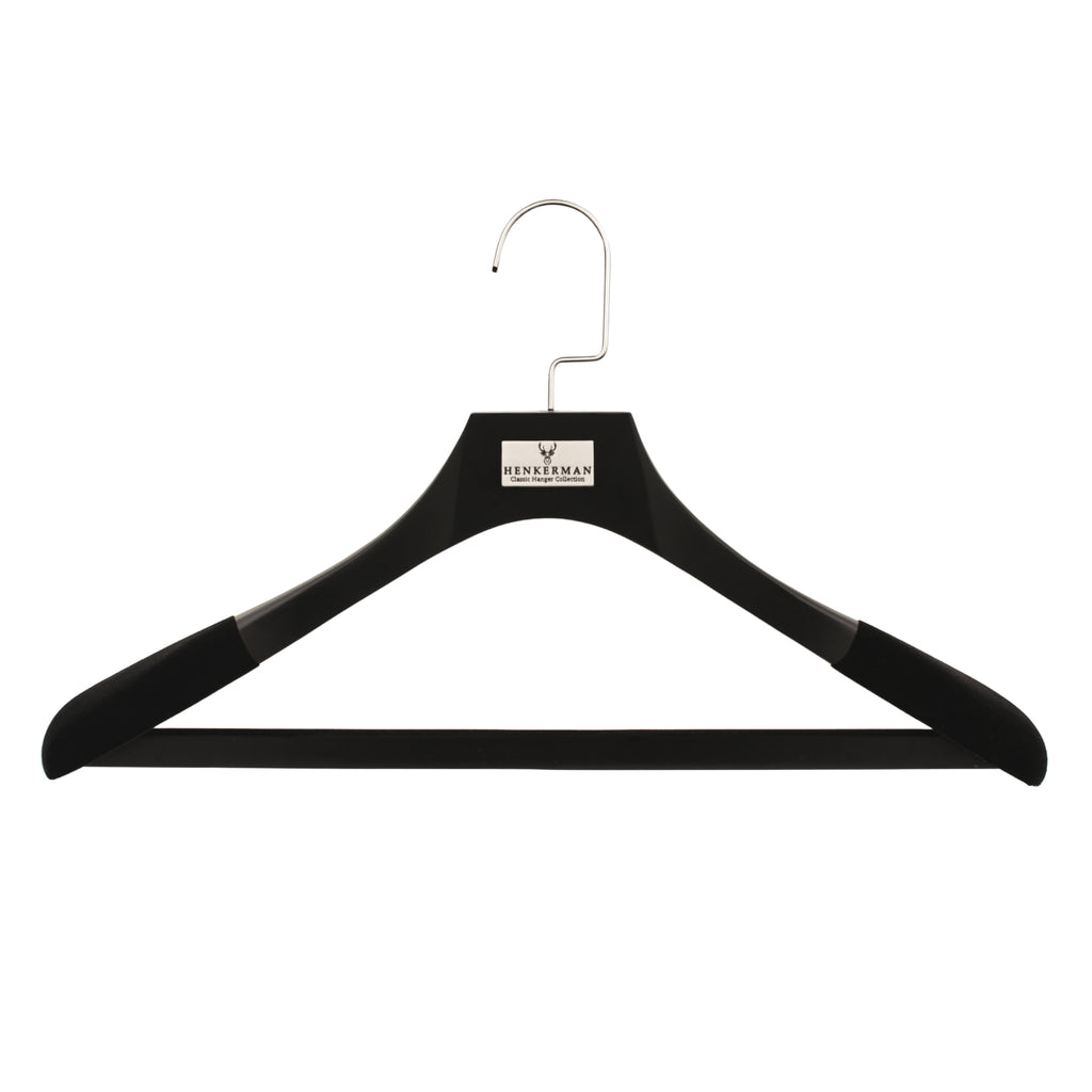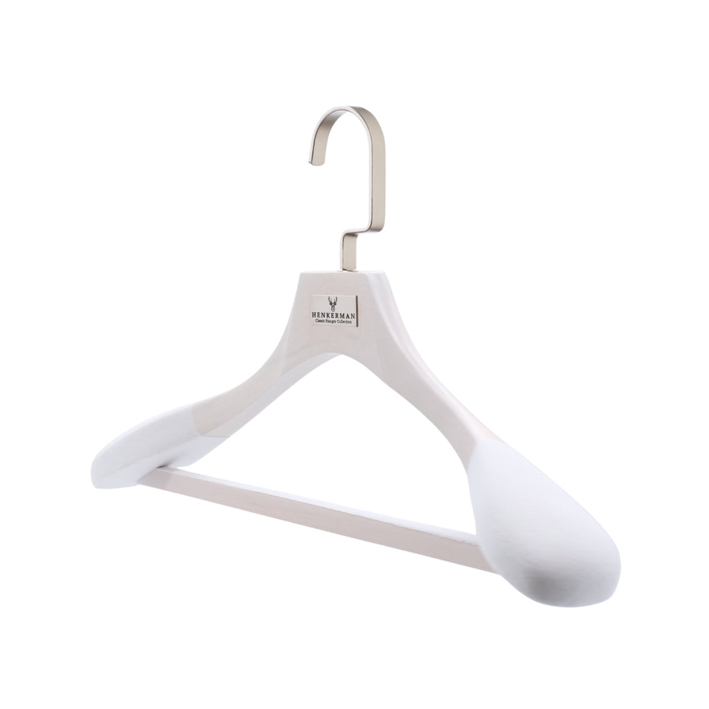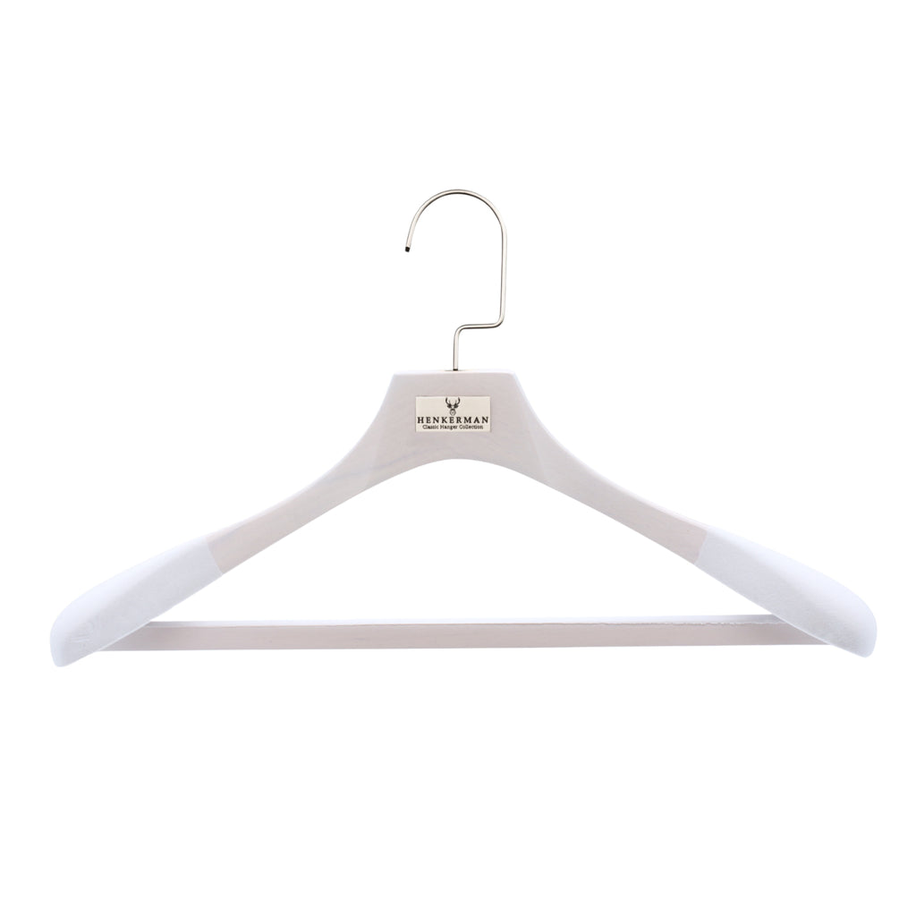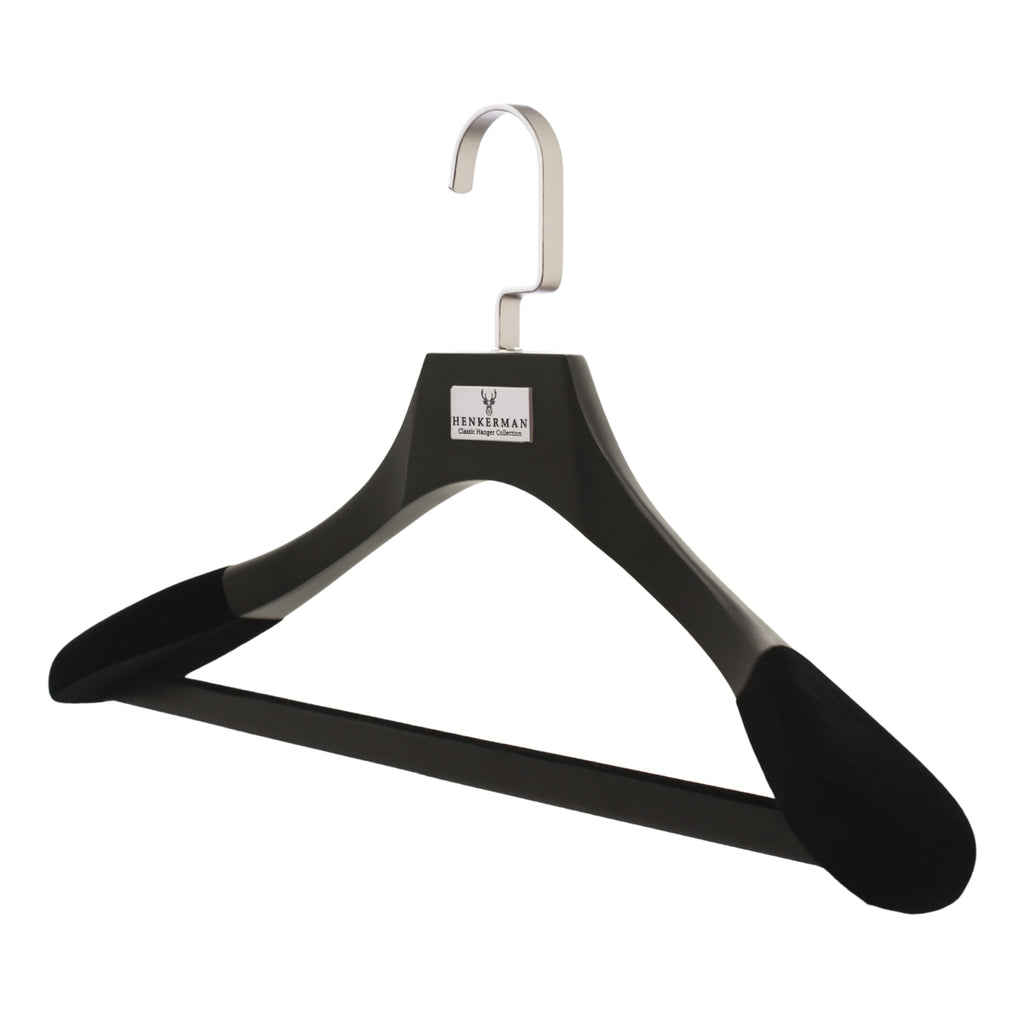 Las perchas de madera de lujo Henkerman® están diseñadas para preservar la forma de las prendas, crear uniformidad en el guardarropa y brindar durabilidad generacional.